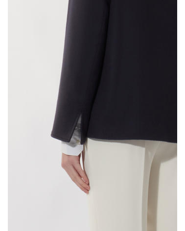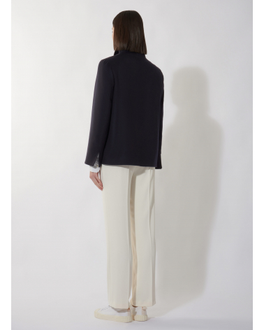 Blue pure wool jacket with high collar