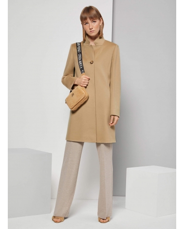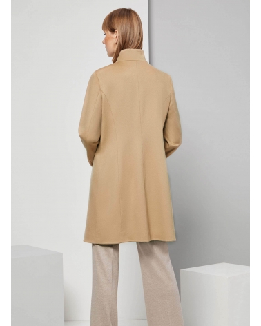 Inverted notch collar light camel coat crafted with Loro Piana Fabric