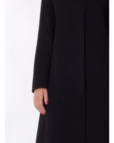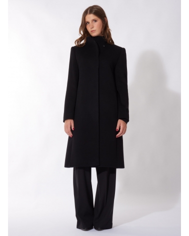 Black pure cashmere coat with high stand up collar