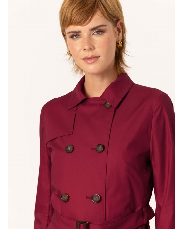 Double-breasted red trench coat in technical fabric with tailored stitches