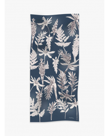 Maxi blue cotton and linen scarf with floral pattern