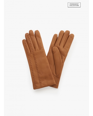Camel nappa leather gloves with top embroidery
