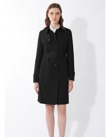 Rainproof tech taffeta black trench coat