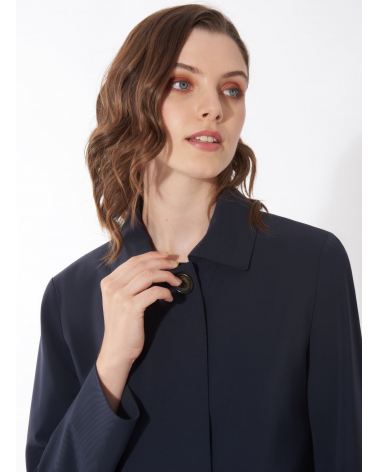 Blue overcoat with shirt collar in technical fabric