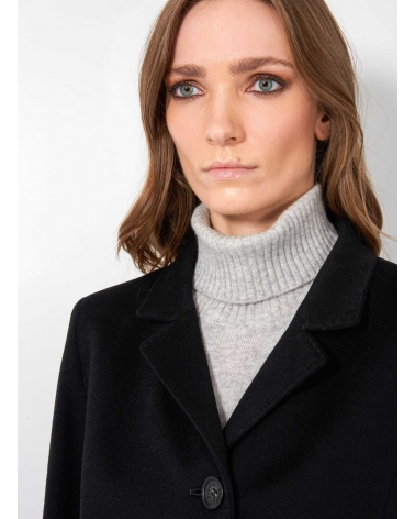 Inverted notch collar black coat crafted with Loro Piana Fabric