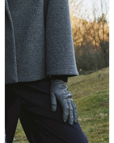 Short grey wool coat with maxi notch collar