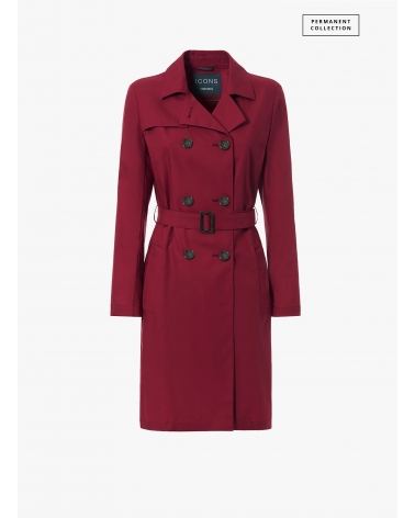 Double-breasted red trench coat in technical fabric with tailored stitches