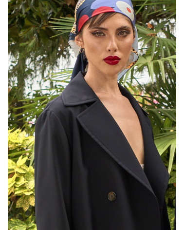 Maxi trench blu doppio petto in tessuto tecnico antigoccia