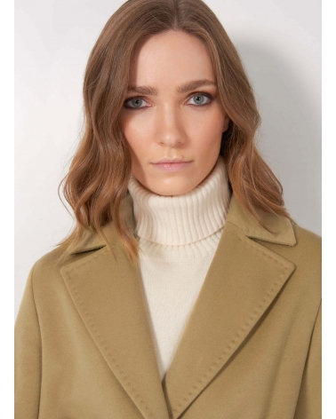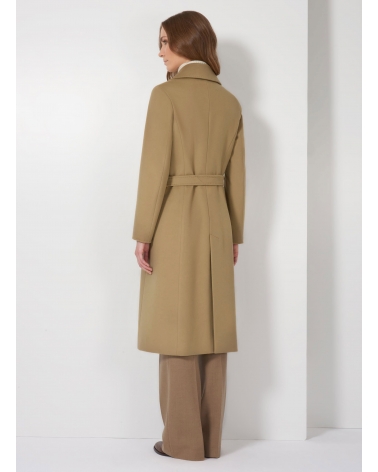 Cappotto cammello con cintura in puro cashmere linea aderente