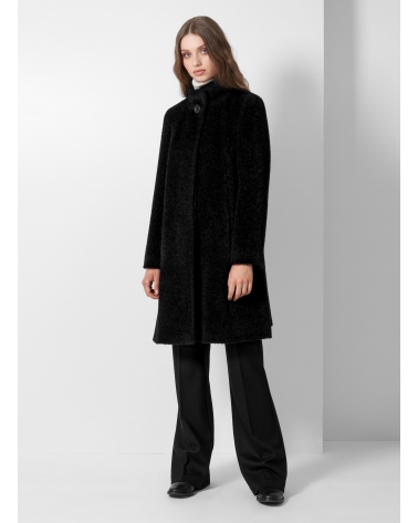 Cappotto nero svasato in lana e alpaca