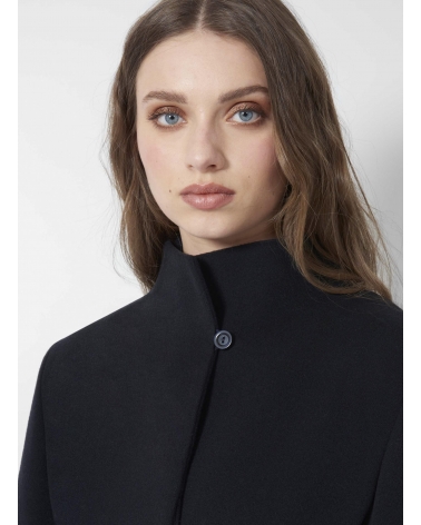 Cappotto blu in lana e cashmere con collo alto