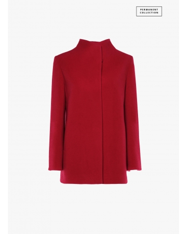 Cappotto corto rosso in lana e cashmere con collo alto