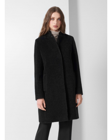 Cappotto nero in lana e alpaca con collo a rever rovesciato