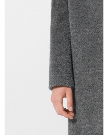 Cappotto grigio svasato in lana e alpaca con collo alto