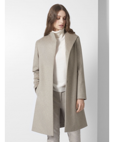 Cappotto beige scuro svasato in puro cashmere con collo alto