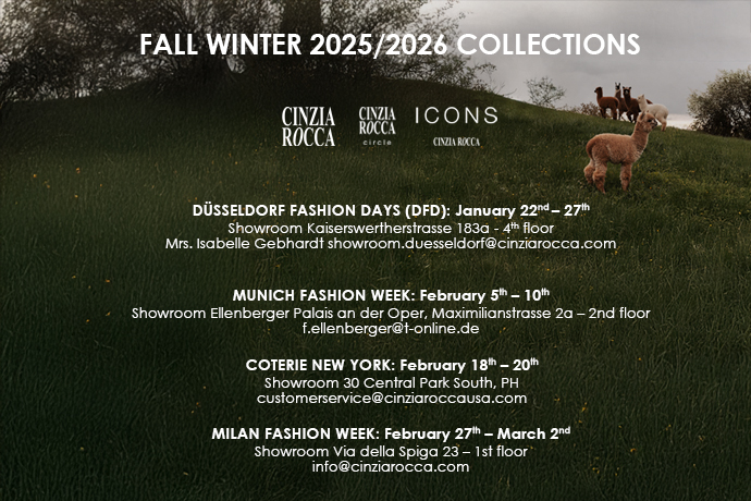 Cinzia Rocca sarà presente ai Düsseldorf Fashion days (DFD) 22/27.01.2025,