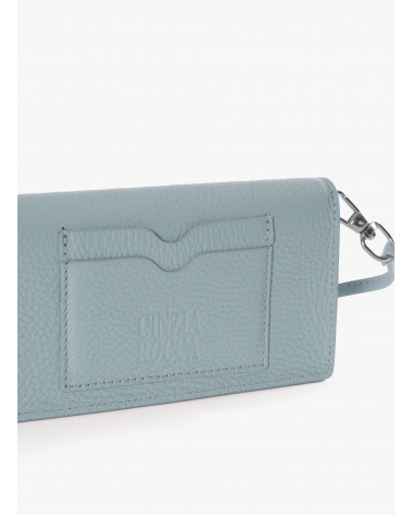 Light blue crossbody phone bag in genuine leather