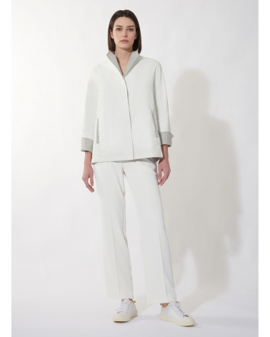 White jacket in rainproof technical fabric with jersey details