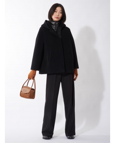 Short black wool parka with detachable nylon bib