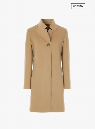 Inverted notch collar black coat crafted with Loro Piana Fabric