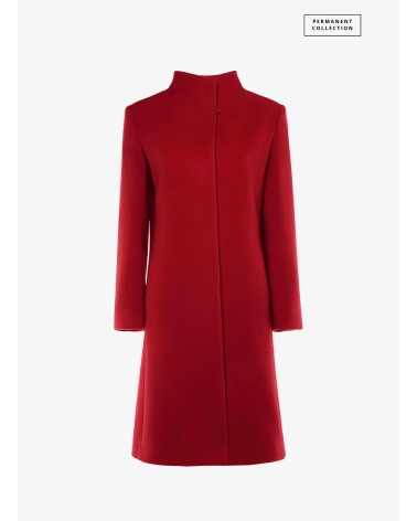 Red wool and cashmere coat with high stand up collar