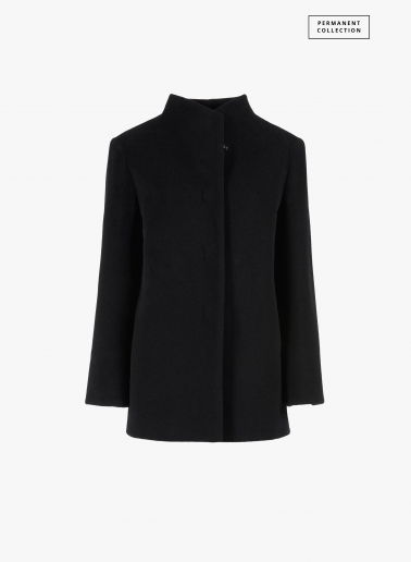 Short red wool and cashmere coat with high stand up collar