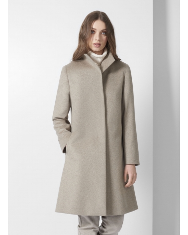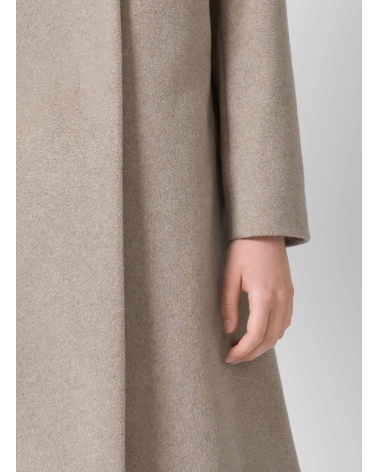 Flared dark beige pure cashmere coat with high stand up collar